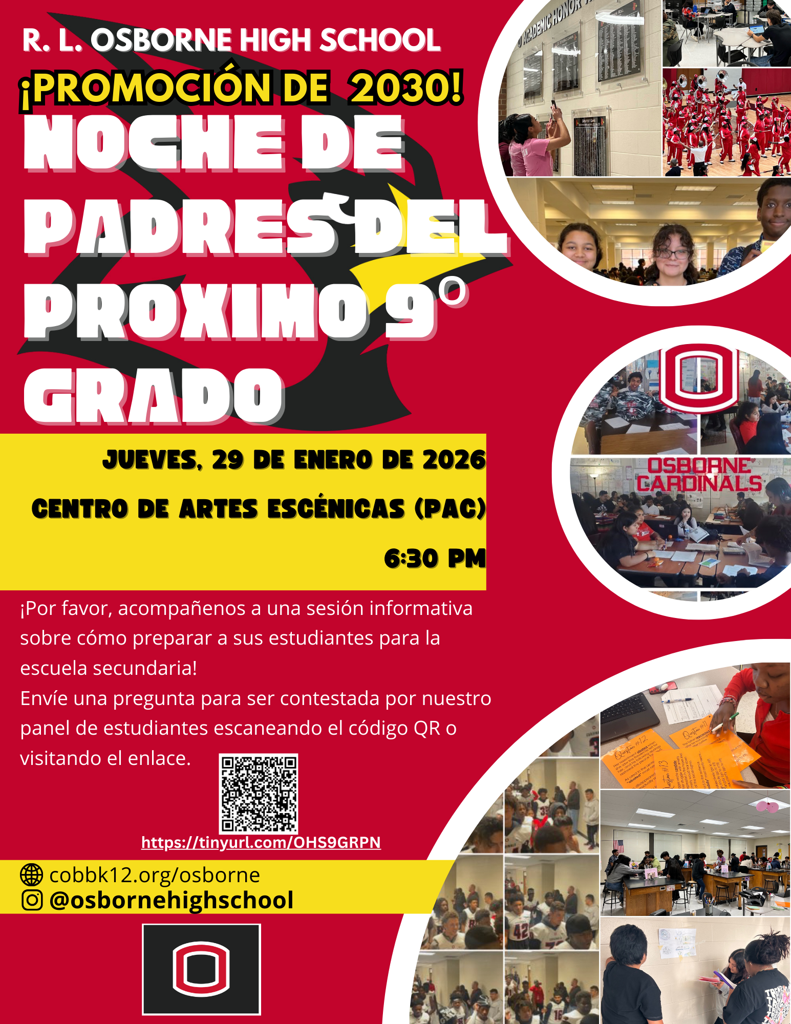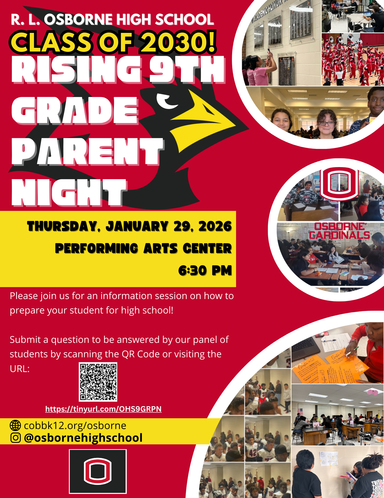 We encourage all 8th Grade Students and their parents to attend the Osborne HS Rising 9th Grade Night.
