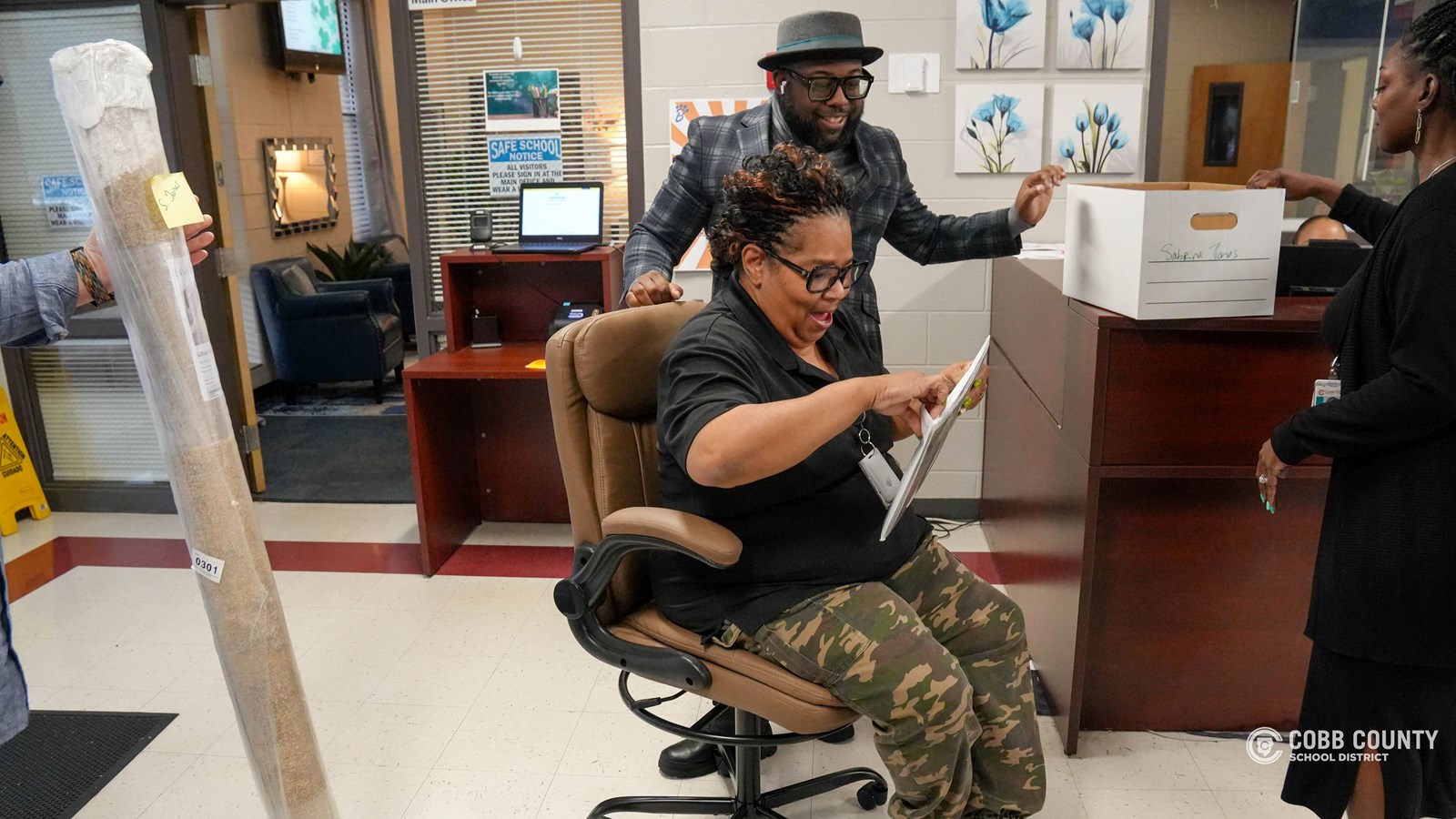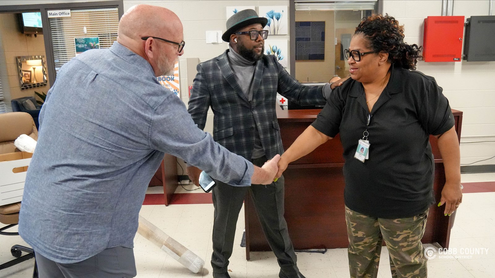 Cobb Schools board member Leroy Tre’ Hutchins attended the surprise and saw firsthand how local businesses support education.
