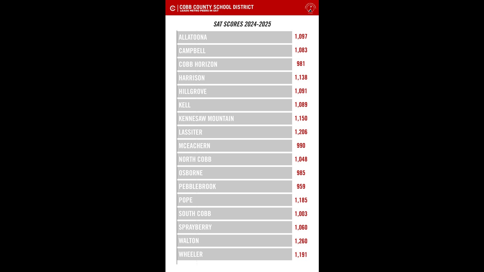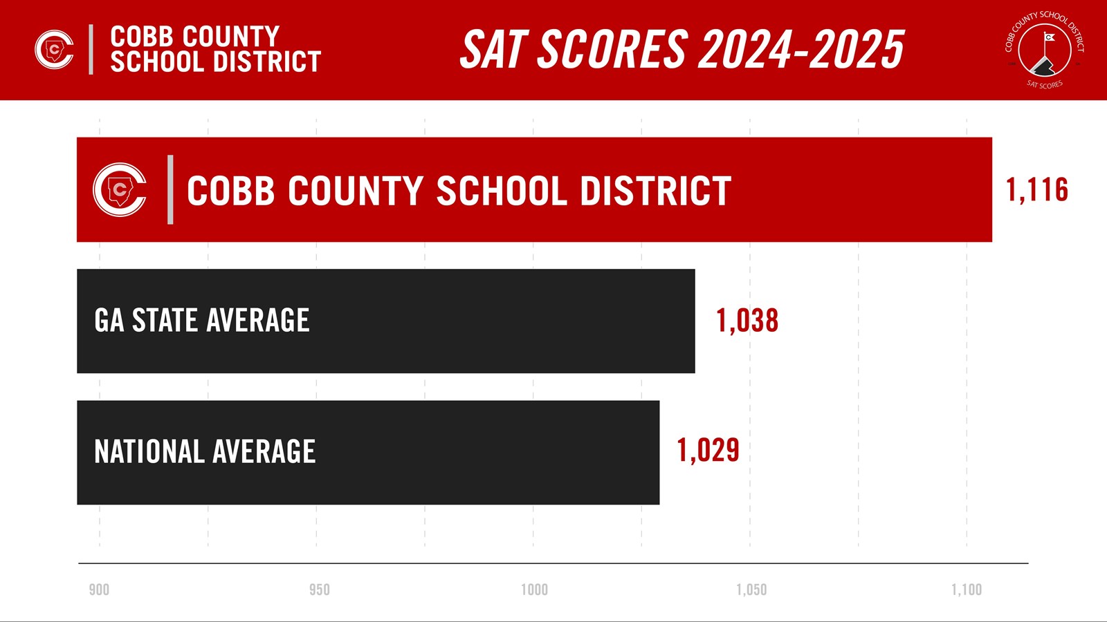 This most recent data is also a sign of growth, which can be attributed to the hard work of students and the dedicated staff who help make sure every student is as prepared as possible. In 2024, the average score in Cobb was 1105, while the 2025 average was up 11 points.