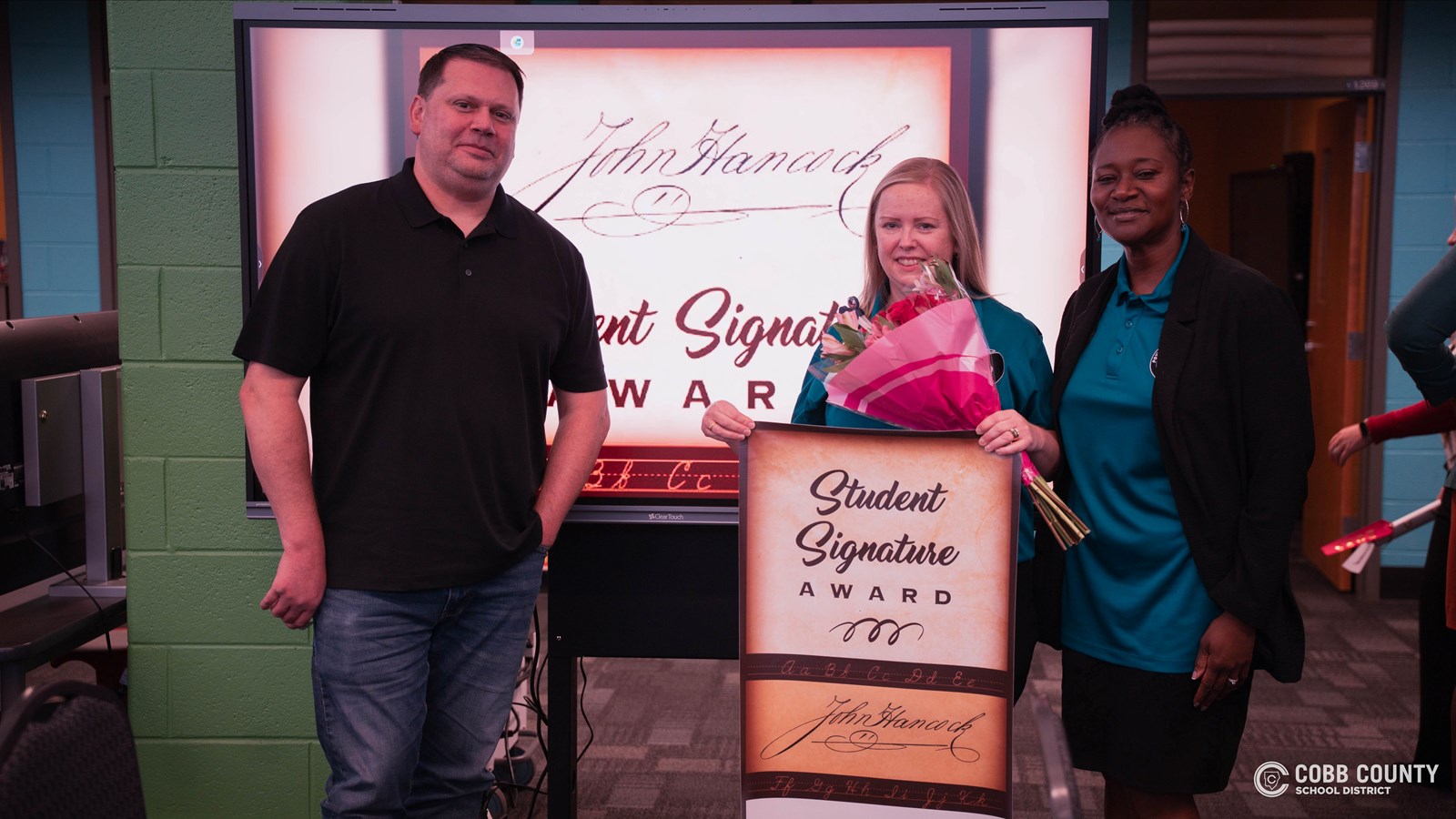 October 3, 2025—The Georgia Department of Education, led by State Superintendent Richard Woods, recently awarded Cobb five elementary schools for their outstanding achievement in cursive handwriting through the John Hancock Award.