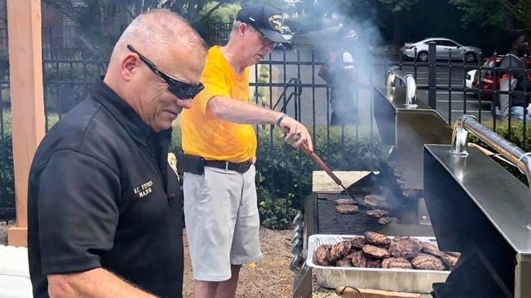 One attendee at the cookout was Hicks Malonson, a member of the North Cobb Rotary. "Don’t believe the folks in the blue and the kids in the jerseys can’t get along," Mr. Malonson wrote in a Facebook post. "You had a former DA, former chief deputy, and the current chief of police join with South Cobb HS football to share life and hot dogs and hamburgers. C’mon. We can do this. I was blown away."