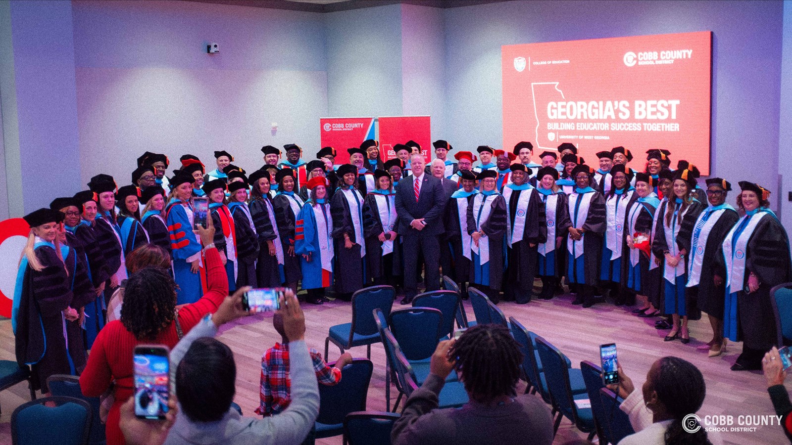 December 16, 2025 — The Cobb County School District is celebrating an extraordinary milestone following Saturday’s commencement ceremony, during which the first class of doctoral graduates of Georgia’s BEST officially crossed the stage. A total of 132 educators graduated from the Georgia's BEST program this fall, and the graduating doctoral students completed 22 school improvement capstones. The graduation marked a powerful moment for the district, honoring educators who committed months of study to strengthen their leadership and deepen their impact on Cobb students.