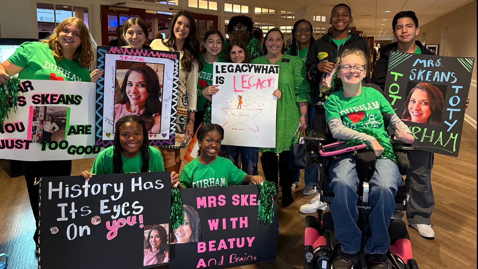 Congratulations to Ms. Heather Skeans, the 2025-2026 Durham Teacher of the Year. She was recognized today at the Teacher of the Year Pep Rally sponsored by the Cobb Chamber of Commerce. We are so proud to have Ms. Skeans as a member of our faculty!