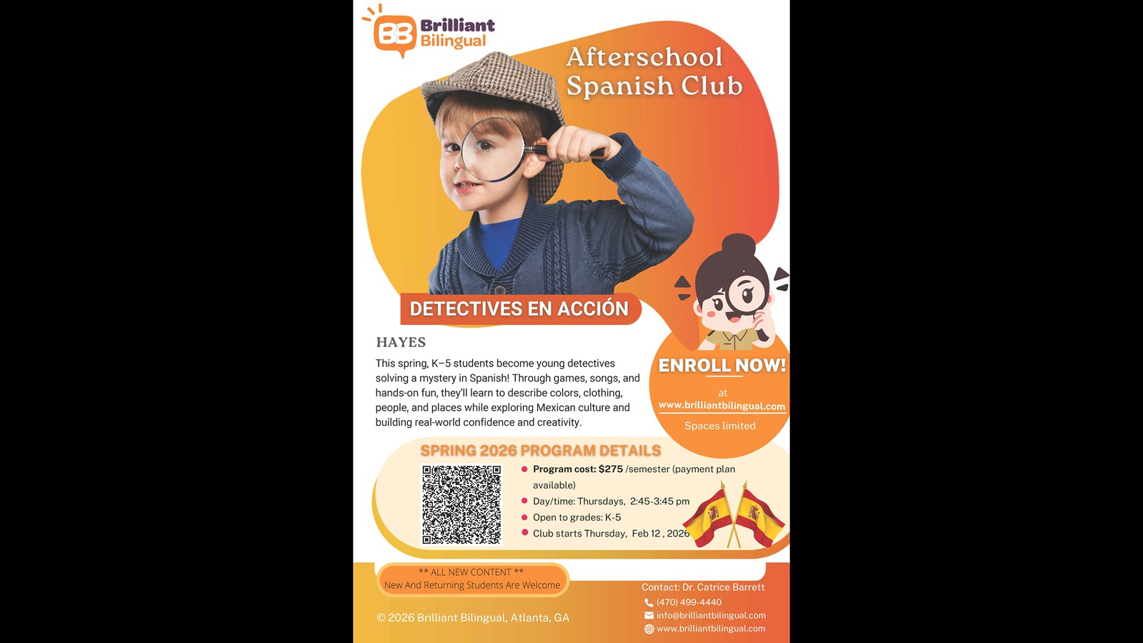- Thursday – Spanish Club | 2/12 – 4/30 Brilliant Bilingual