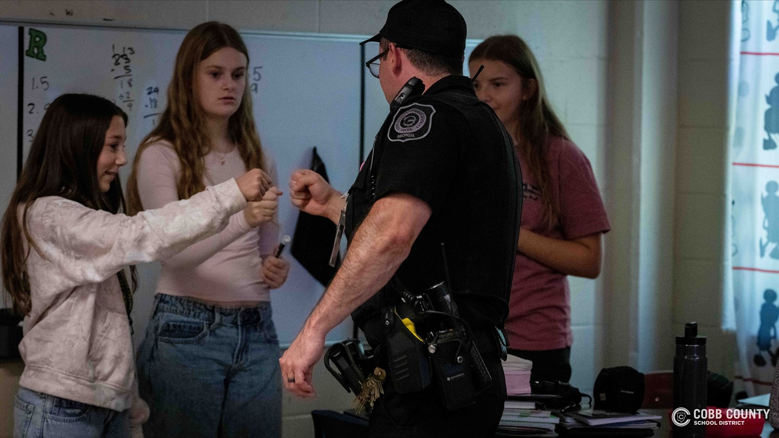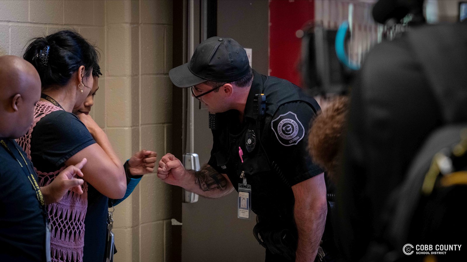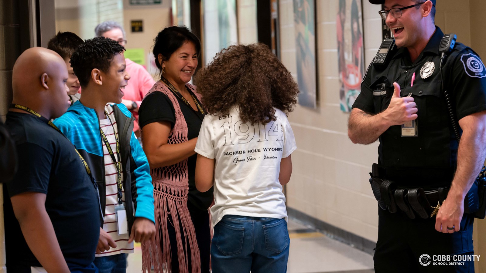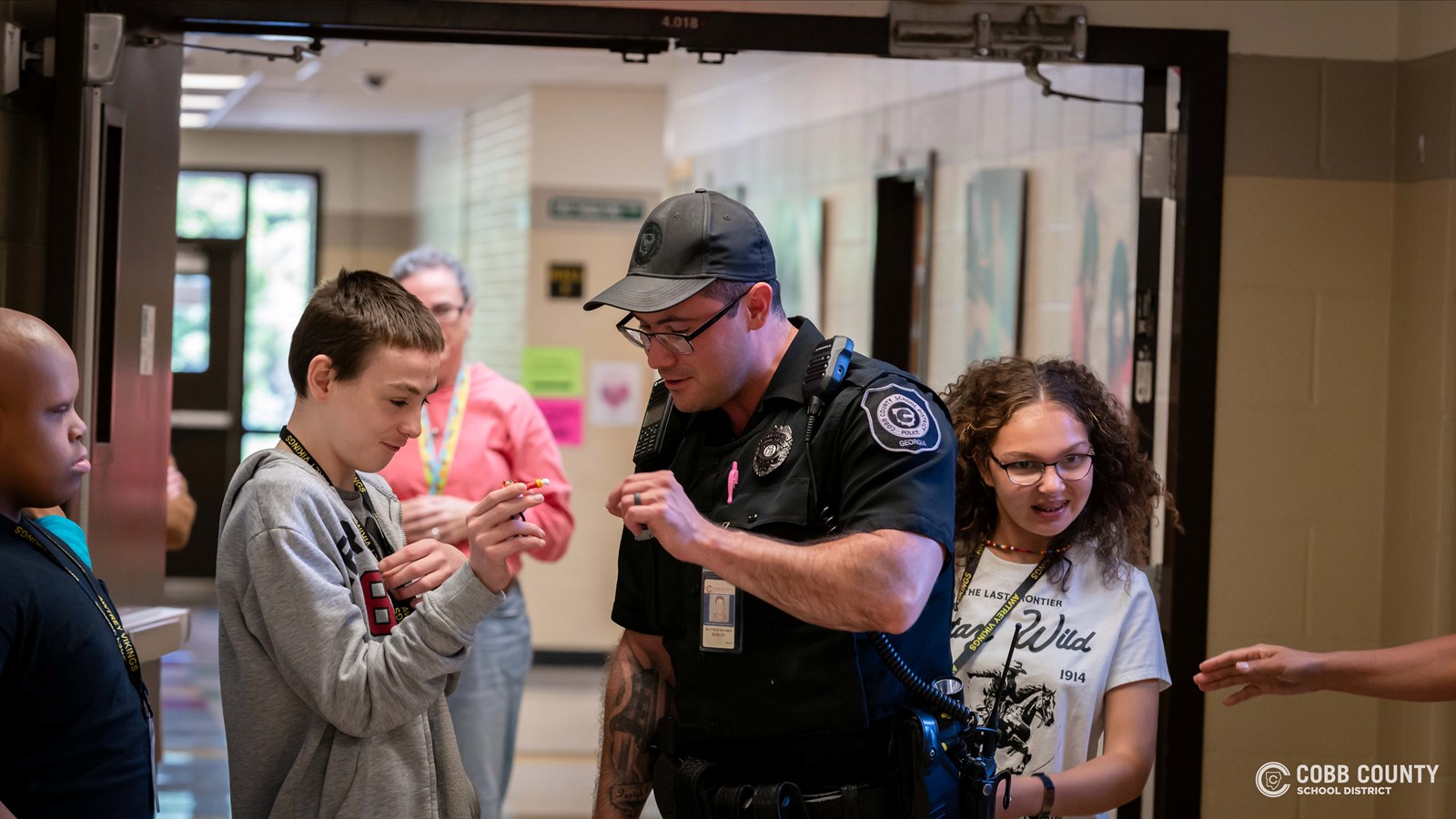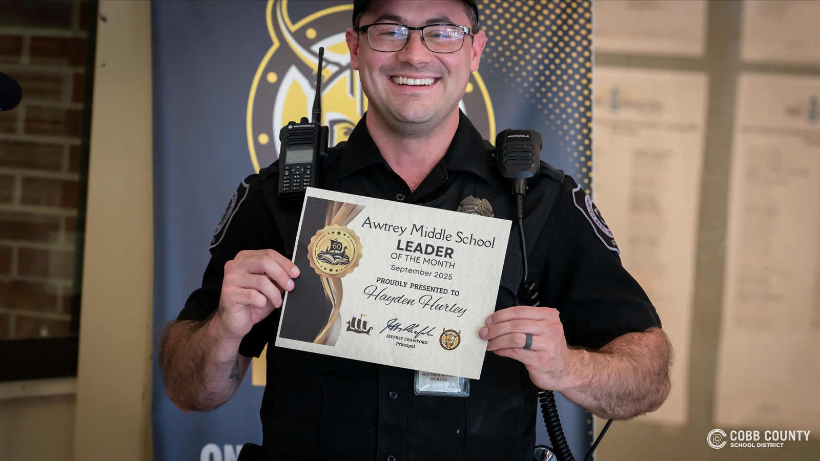 October 9, 2025 — Walking down the halls of Awtrey Middle School, School Resource Officer (SRO) Hayden Hurley fist bumps and greets students with a huge smile. For Officer Hurley, serving as part of the Cobb Schools Police Department isn’t just a job; it’s a calling.