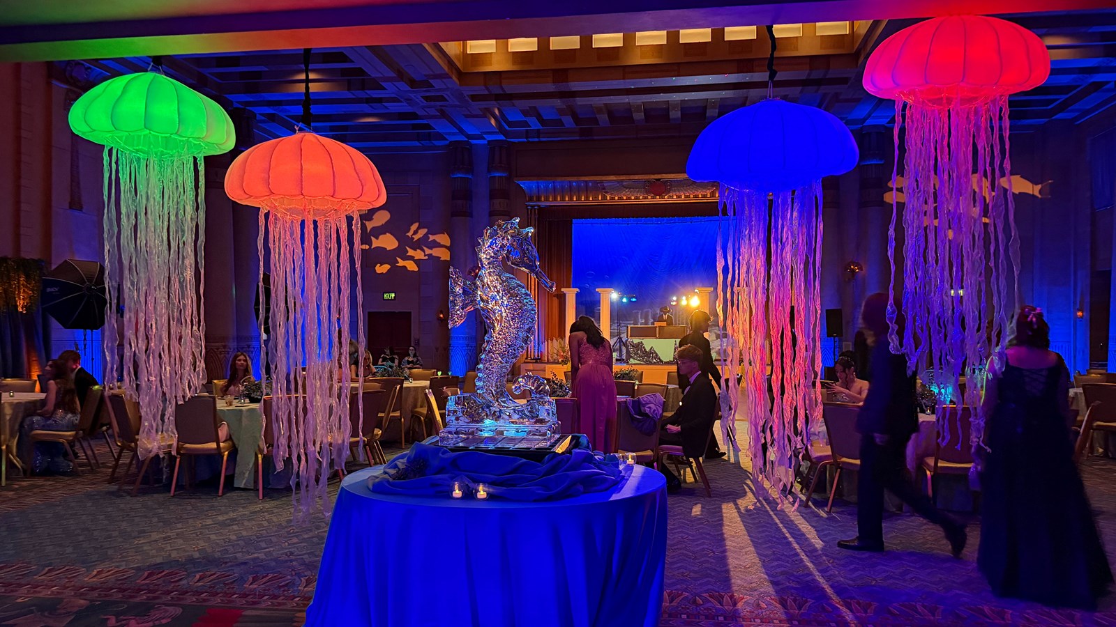 On Saturday, March 28, Lassiter High School juniors and seniors gathered at the Fox Theatre for prom, themed “A Night in Atlantis: An Enchanted Evening Under the Sea.” The venue was transformed with shimmering blues, ocean-inspired décor, and soft lighting that created a magical underwater atmosphere.