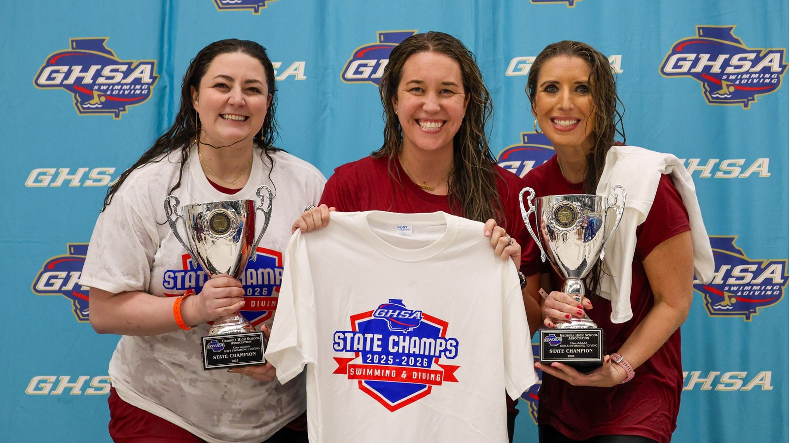 While the girls were adding another trophy to their consecutive State Title streak, this year, Coach Hughes also orchestrated a GHSA Boys Swimming and Diving State Championship. It is the first State Title for the male swimmers in the school’s history and represented an amazing double domination with both boys and girls sweeping the 5A classification State Championships this year. The boys’ win gave Coach Hughes her eighth overall State Title.