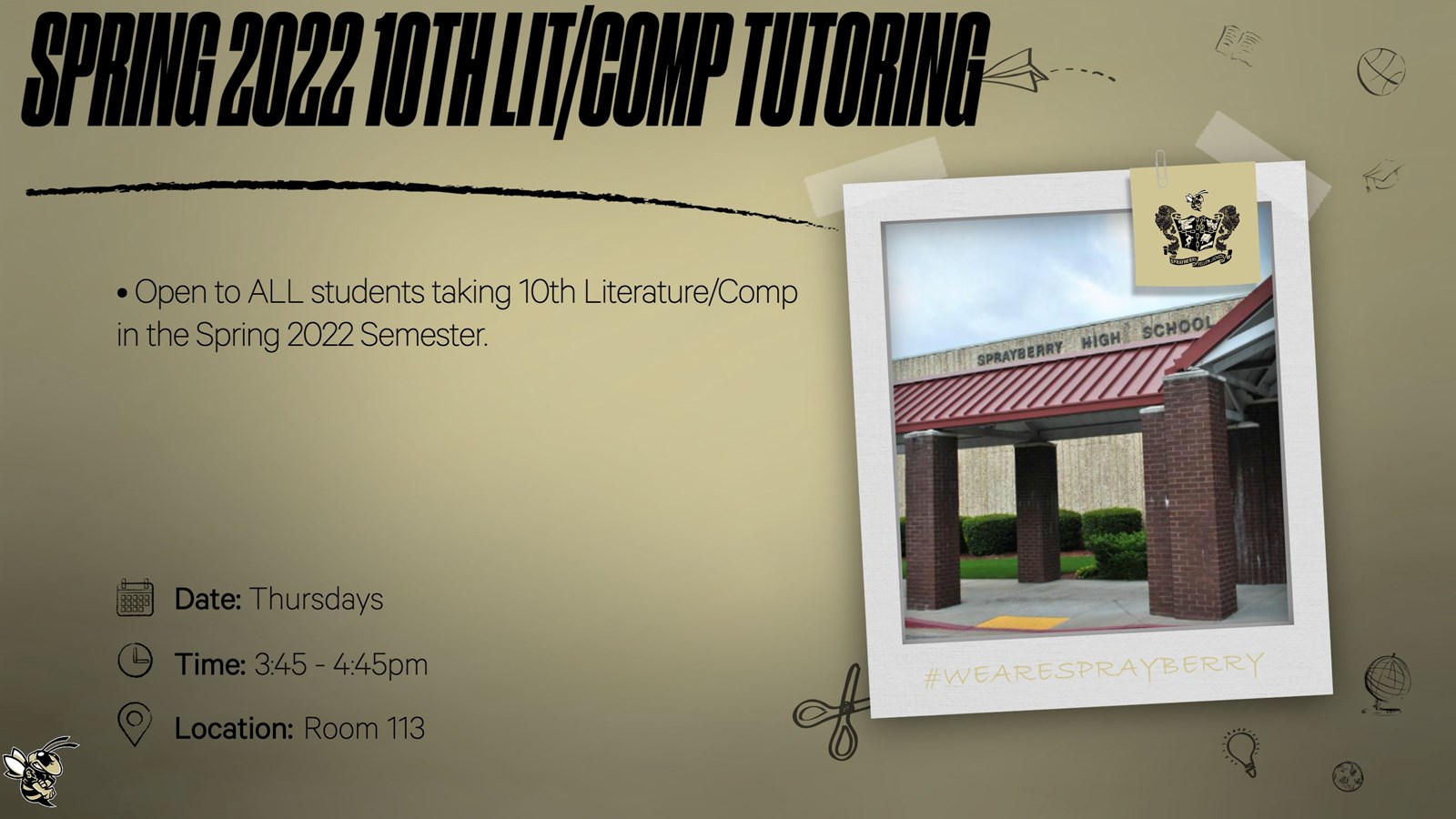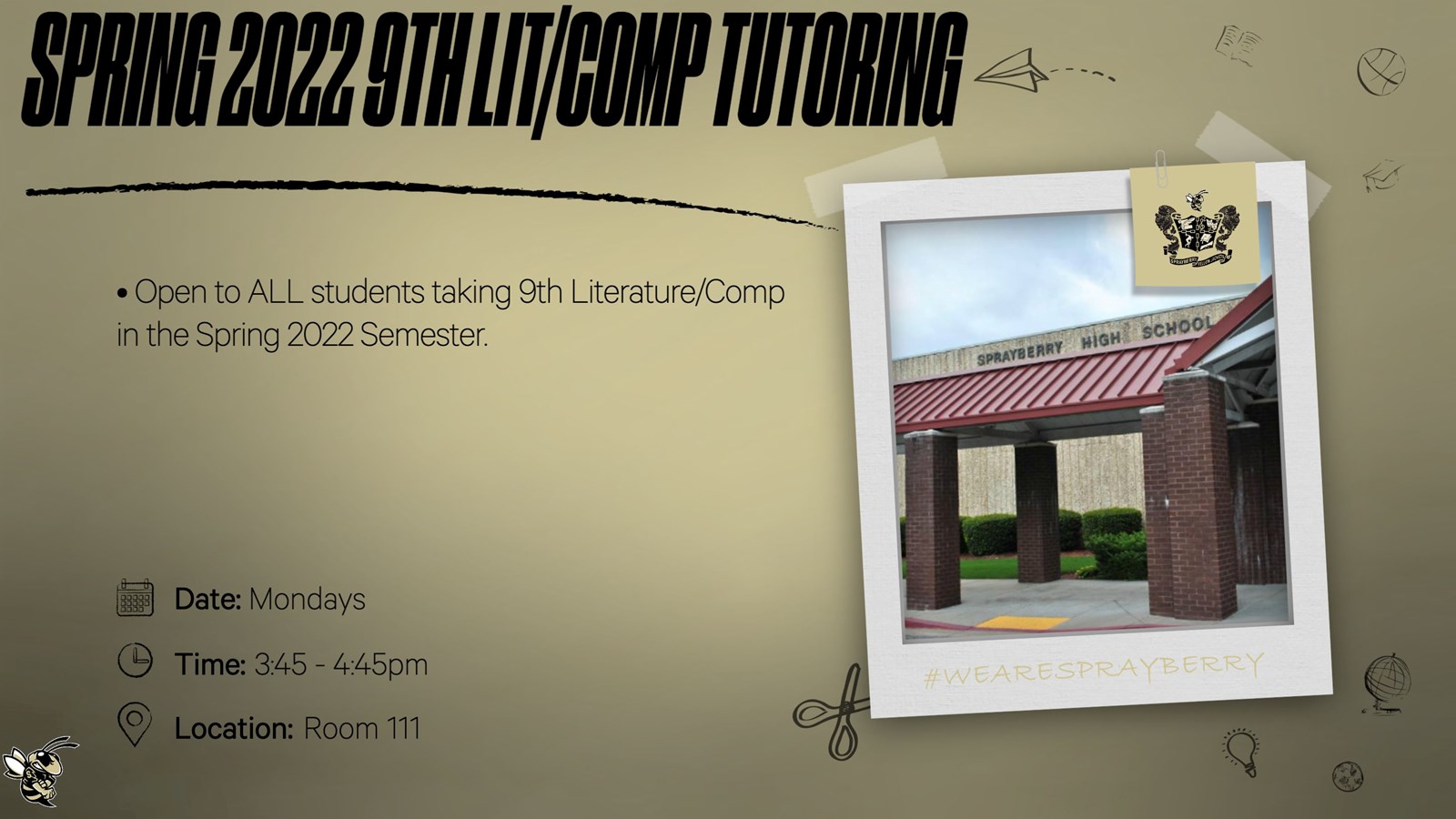 | 9th Literature/Composition | Monday | Room 111 | 3:45pm |