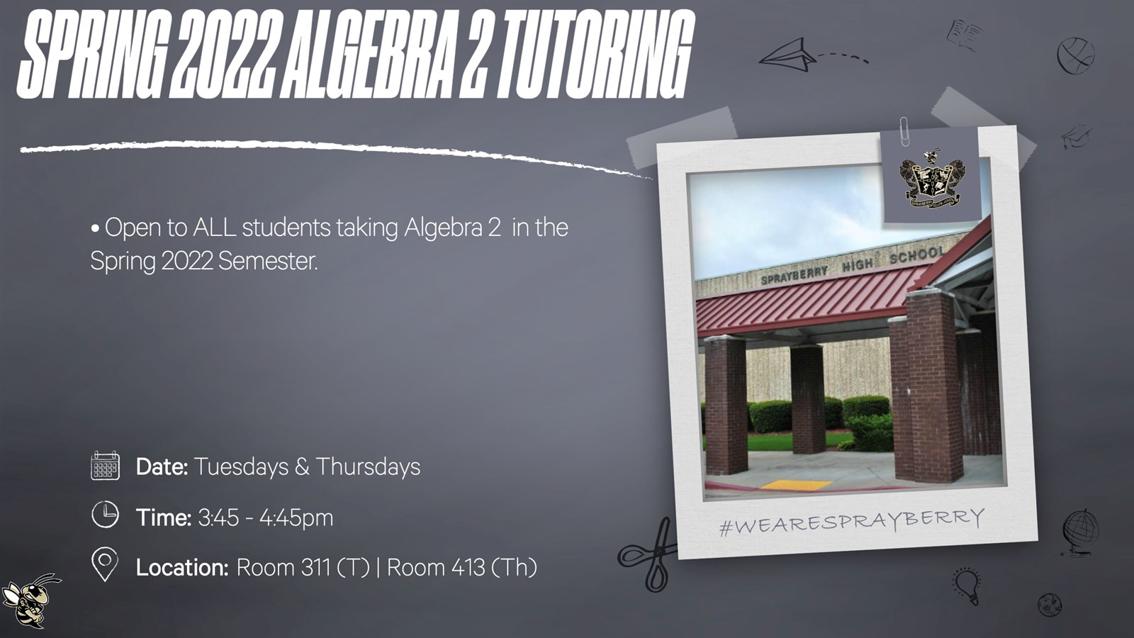 | Algebra II | Thursday | Room 413 | 3:45pm |