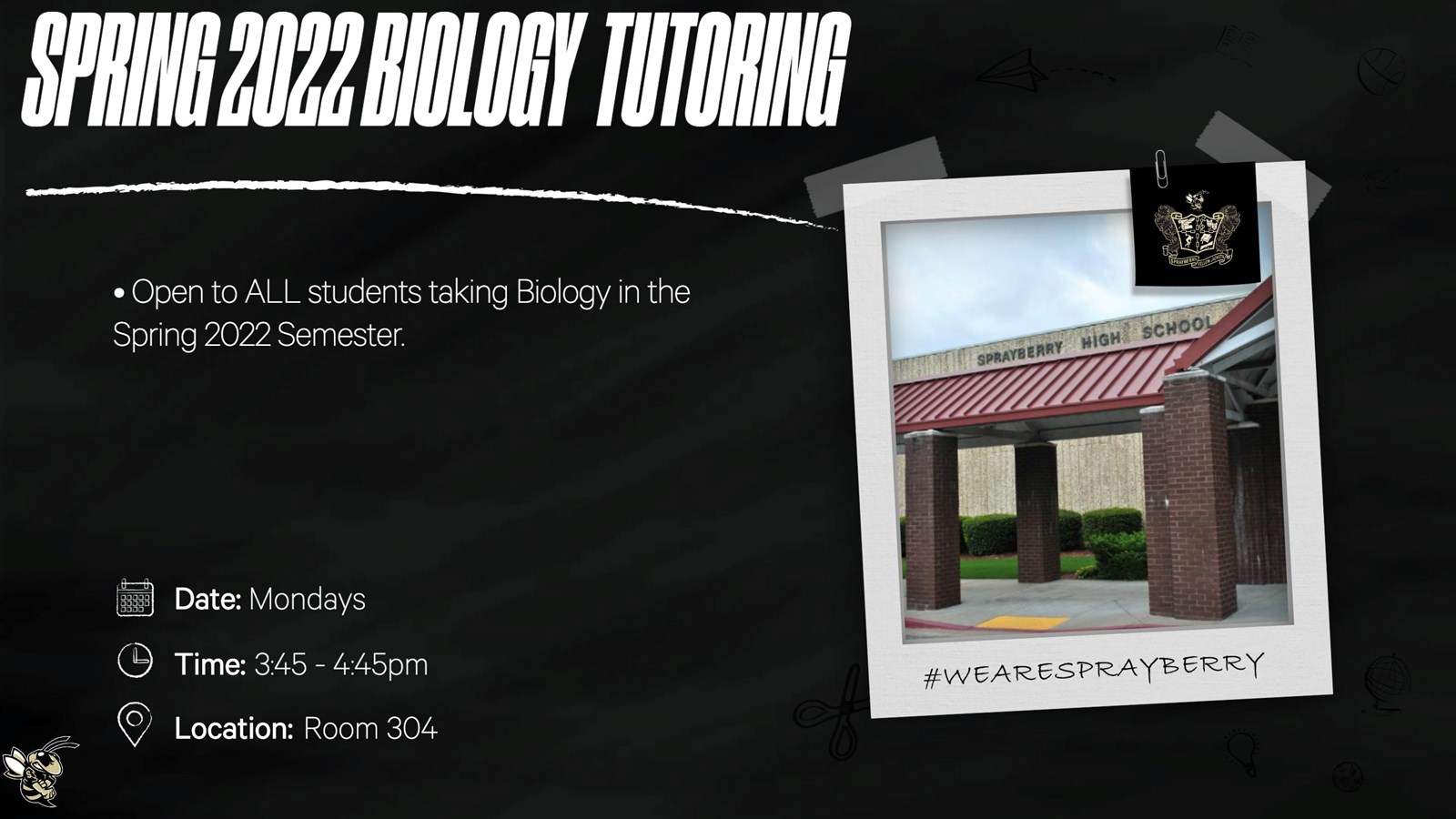 | AP Biology | Monday | Room 410 | 3:45pm |