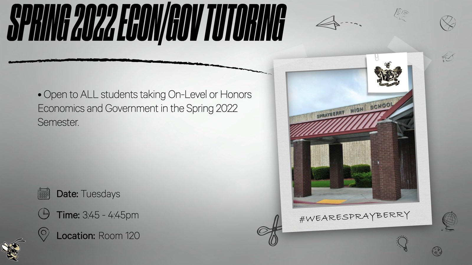 | Economics/Government | Thursday | Room 124 | 3:45pm |